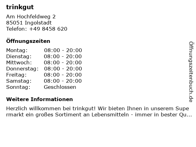 | Öffnungszeiten trinkgut in Ingolstadt anzeigen | |