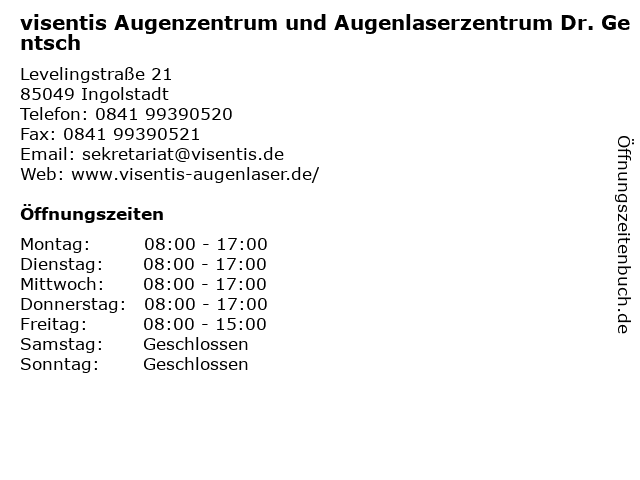 3 Faßbender Dr. & Kollegen, Viselle Augenzentrum Neumarkt GmbH (Entfernung: 47,62 km) Marktplatz 10, 92342 Freystadt 4 OSG Augenzentrum Augsburg am Vincentinum (Entfernung: 56,22 km) Vinzenz-von-Paul-Platz 1, 86152 Augsburg 6 |