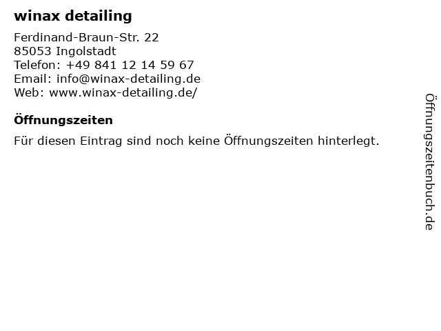 | Öffnungszeiten winax detailing in Ingolstadt anzeigen | |