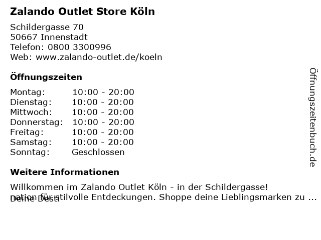 | Öffnungszeiten Zalando Outlet Store Köln in Innenstadt anzeigen | |