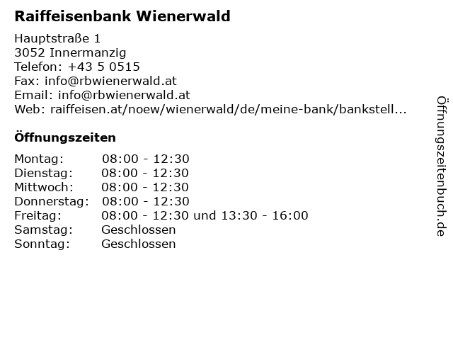 | Öffnungszeiten Raiffeisenbank Wienerwald in Innermanzig anzeigen | |
