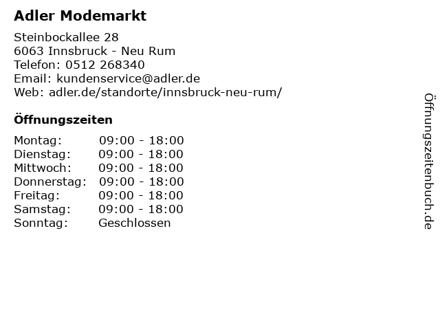 | Öffnungszeiten Adler Modemarkt in Innsbruck - Neu Rum anzeigen | |