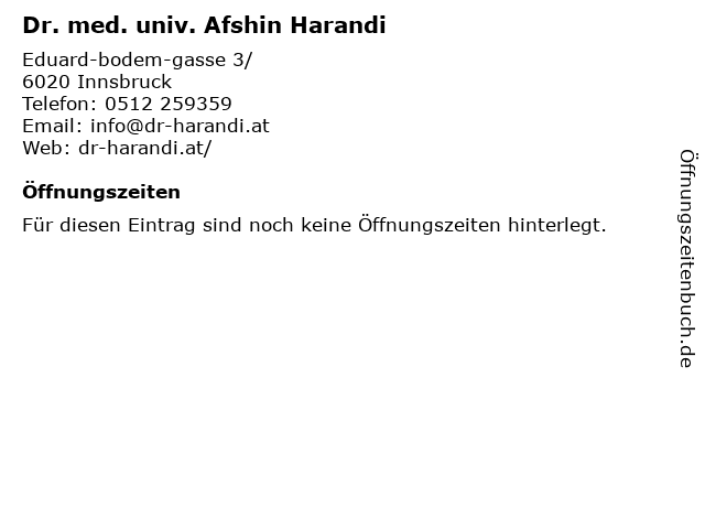 | Dr. med. univ. Afshin Harandi anrufen | |
