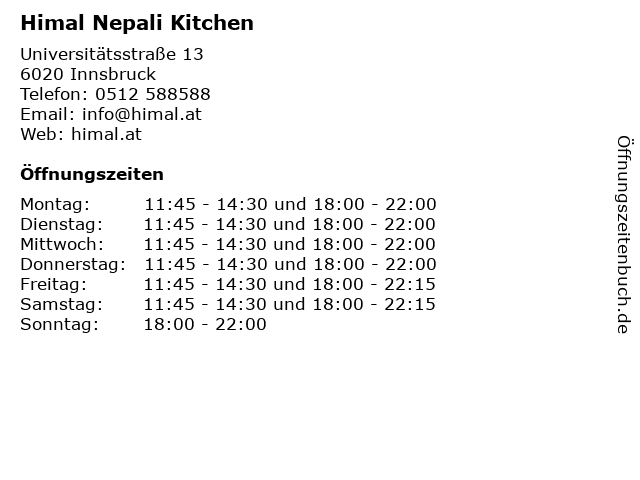 Öffnungszeiten Himal Nepali Kitchen in Innsbruck anzeigen | |