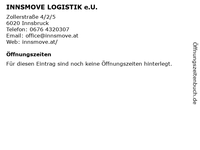 | Öffnungszeiten INNSMOVE LOGISTIK e.U. in Innsbruck anzeigen | |
