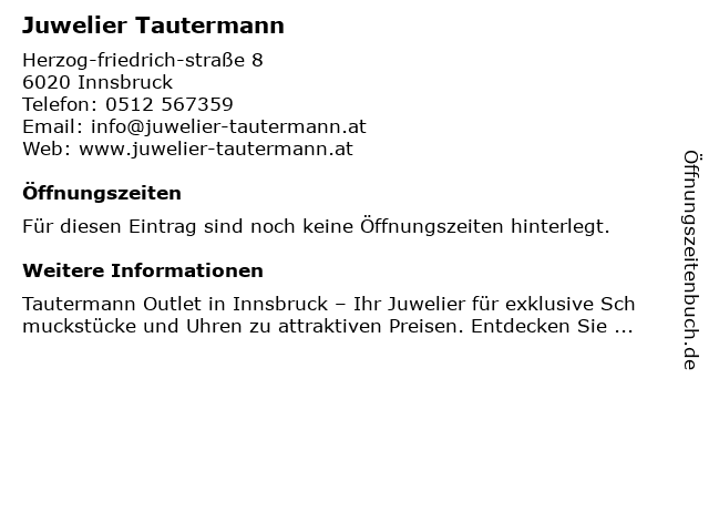 | Öffnungszeiten Juwelier Tautermann in Innsbruck anzeigen | |
