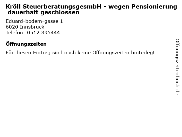 | Kröll SteuerberatungsgesmbH - wegen Pensionierung dauerhaft geschlossen anrufen | |