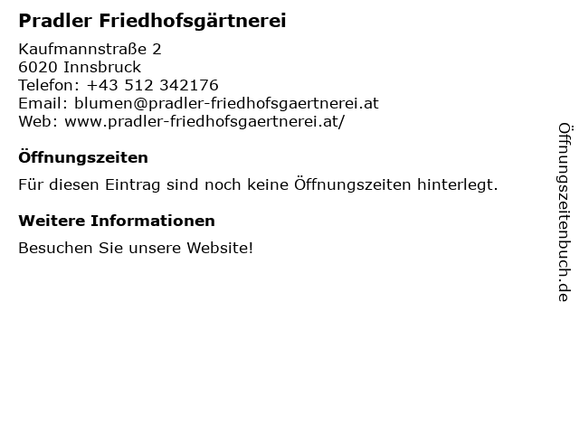 | Öffnungszeiten Pradler Friedhofsgärtnerei in Innsbruck anzeigen | |