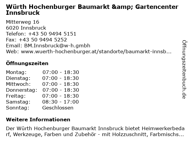 Branchen & Suchbegriffe zu Würth Hochenburger Baumarkt & Gartencenter Innsbruck:3d-badplanung, bau- und heimwerkerprodukte, baumarkt, baumarkt innsbruck, baumaterialien innsbruck, diy innsbruck, farbmischservice, gartenbau innsbruck, gartenbau tirol, gartencenter, gartencenter innsbruck:, heimwerkerbedarf innsbruck, hochenburger, holzzuschnitt, innsbruck, leihtransporter, renovierungsbedarf innsbruck, werkzeuge innsbruck, würth |