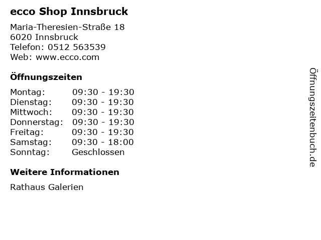 | Öffnungszeiten ecco Shop Innsbruck in Innsbruck anzeigen | |