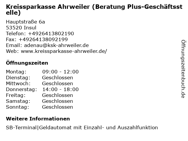 Branchen & Suchbegriffe zu Kreissparkasse Ahrweiler (SB-Geschäftsstelle):ahrweiler, geschäftsstelle, kreissparkasse, sb |