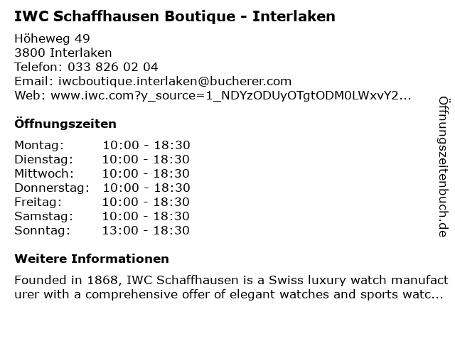 Branchen & Suchbegriffe zu IWC Schaffhausen Boutique - Interlaken:boutique, interlaken, iwc, schaffhausen |