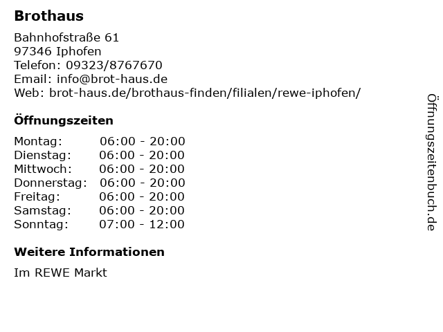 | Öffnungszeiten Brothaus in Iphofen anzeigen | |