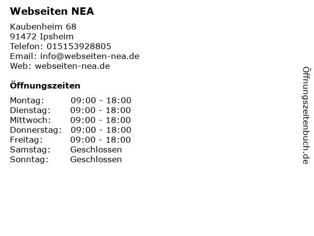 | Öffnungszeiten Webseiten NEA in Ipsheim anzeigen | |