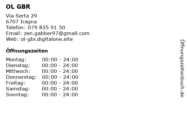 | Öffnungszeiten OL GBR in Iragna anzeigen | |