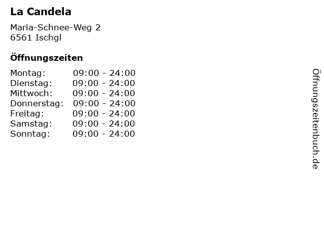 | Öffnungszeiten La Candela in Ischgl anzeigen | |