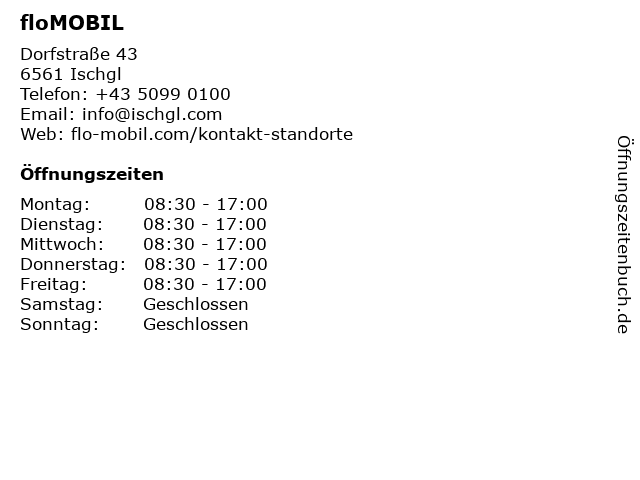 | Öffnungszeiten floMOBIL in Ischgl anzeigen | |