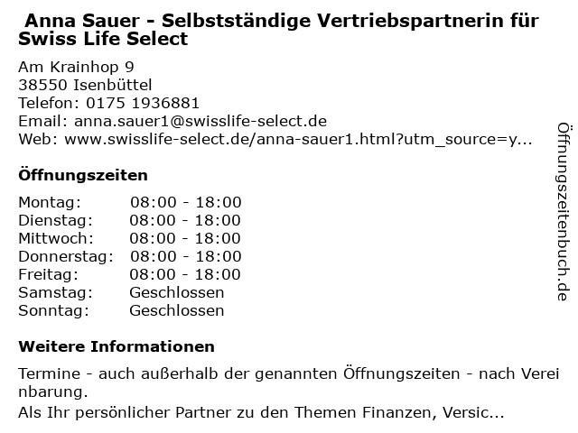 Branchen & Suchbegriffe zu Anna Sauer - Selbstständige Vertriebspartnerin für Swiss Life Select:anna, berufshaftpflichtversicherung, berufsunfähigkeitsversicherung, finanzplanung, gebäude- und hausratsversicherung, investmentservice, lebensversicherung, life, mietrechtsschutzversicherung, pflegeversicherung, sauer, selbstständige, select, swiss, versicherungsberater, vertriebspartnerin |