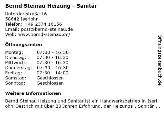 Branchen & Suchbegriffe zu Bernd Steinau Heizung - Sanitär:badrenovierung, bauklempnerei, bernd, brennwerttechnik, fußbodenheizung, gasinstallation, handwerksbetrieb, heizung, heizung und sanitär, heizungsbau iserlohn, heizungsreparatur, heizungswartung, klima- und lüftungsanlagen, kundendienst, meisterbetrieb, regenwassernutzung, rohrreinigung, sanitär, sanitärinstallation, wartungsservice, wasserversorgung, wärmepumpen |
