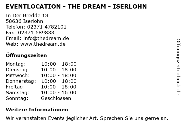 Branchen & Suchbegriffe zu EVENTLOCATION - THE DREAM - ISERLOHN:dream, eventlocation, the |