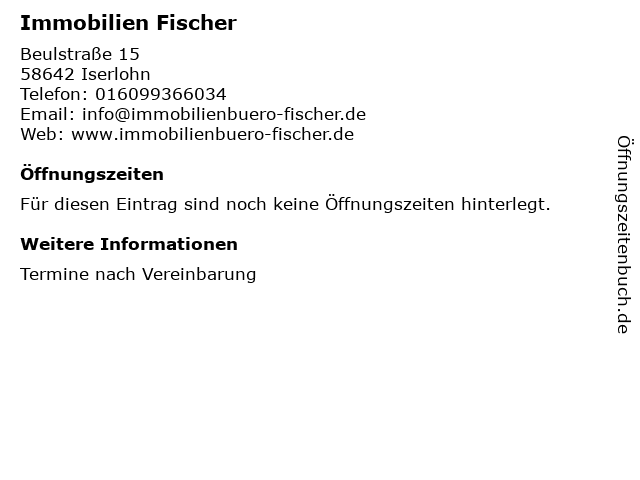 | Öffnungszeiten Immobilien Fischer in Iserlohn anzeigen | |