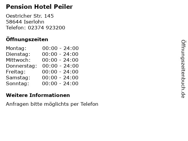 | Öffnungszeiten Pension Hotel Peiler in Iserlohn anzeigen | |