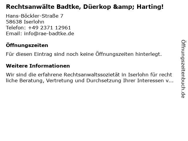 Branchen & Suchbegriffe zu Rechtsanwälte Badtke, Düerkop & Harting!:anwalt iserlohn, anwaltskanzelei iserlohn, badtke, düerkop, harting!, rechtsanwalt iserlohn, rechtsanwaltskanzlei iserlohn, rechtsanwälte |