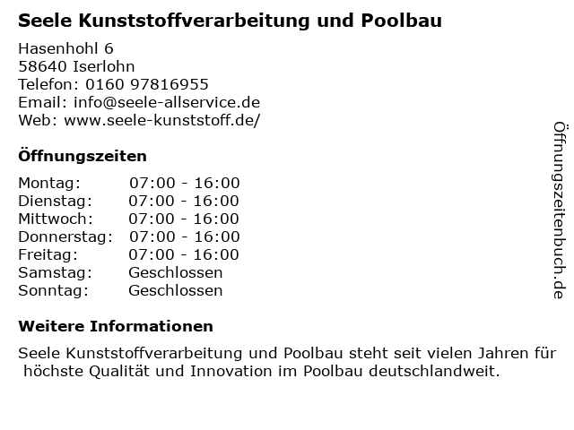 Branchen & Suchbegriffe zu Seele Kunststoffverarbeitung und Poolbau:kunststoffverarbeitung, poolbau, poolreinigung, seele |