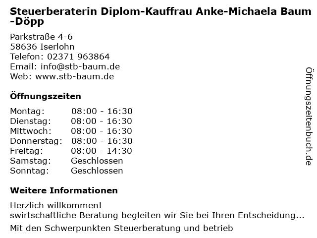 Branchen & Suchbegriffe zu Steuerberaterin Diplom-Kauffrau Anke-Michaela Baum-Döpp:anke, baum, diplom, döpp, kauffrau, michaela, steuerberaterin |