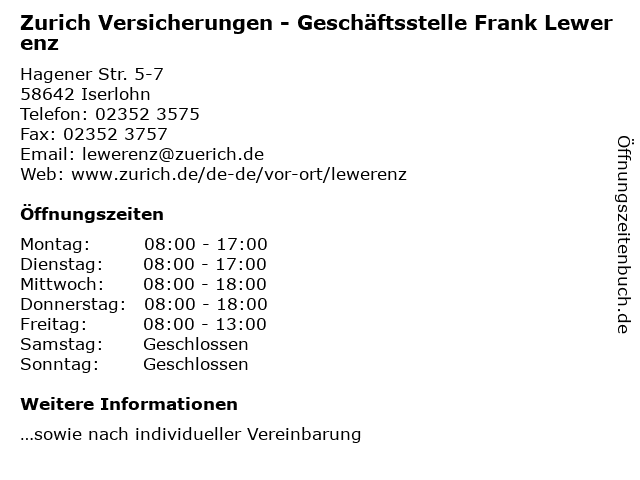 Branchen & Suchbegriffe zu Zurich Versicherungen - Geschäftsstelle Frank Lewerenz:frank, geschäftsstelle, handelsvertreter, lewerenz, vermittler, versicherung, versicherungen, versicherungsagenturen, zurich, zürich |