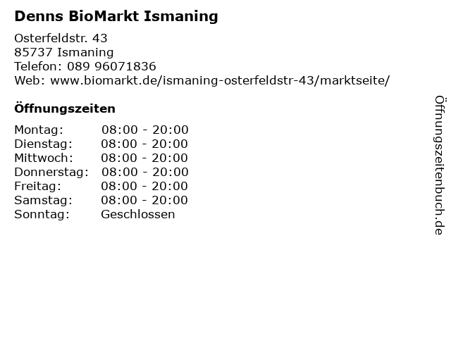 | Öffnungszeiten Denns BioMarkt Ismaning in Ismaning anzeigen | |