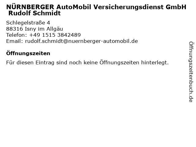 | NÜRNBERGER AutoMobil Versicherungsdienst GmbH Rudolf Schmidt anrufen | |