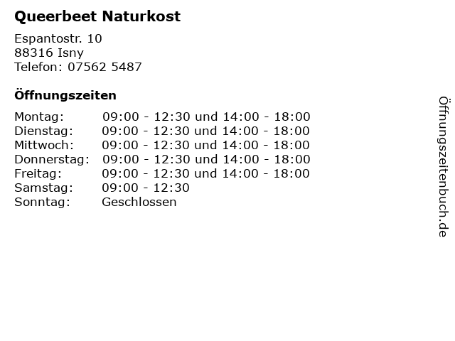 | Öffnungszeiten Queerbeet Naturkost in Isny anzeigen | |
