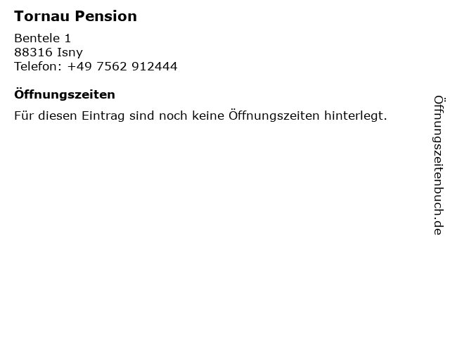 | Öffnungszeiten Tornau Pension in Isny anzeigen | |