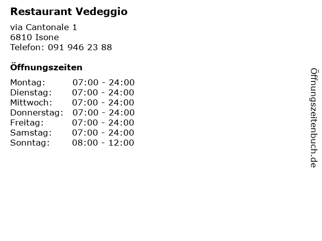 | Öffnungszeiten Restaurant Vedeggio in Isone anzeigen | |