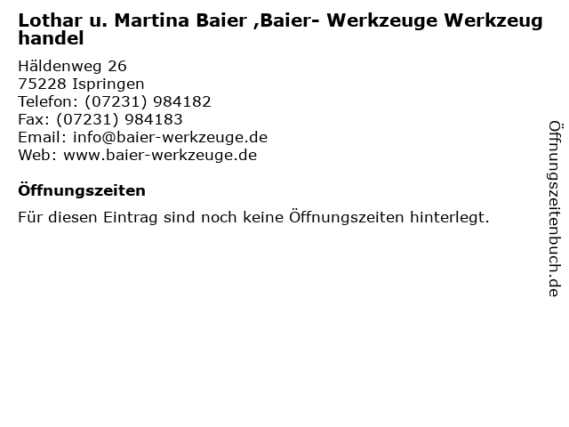 | Lothar u. Martina Baier ,Baier- Werkzeuge Werkzeughandel anrufen | |