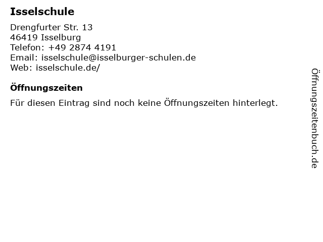 | Öffnungszeiten Isselschule in Isselburg anzeigen | |