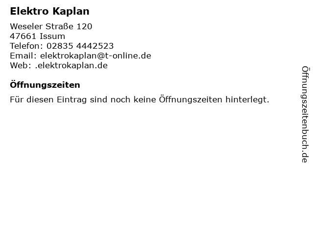 | Öffnungszeiten Elektro Kaplan in Issum anzeigen | |