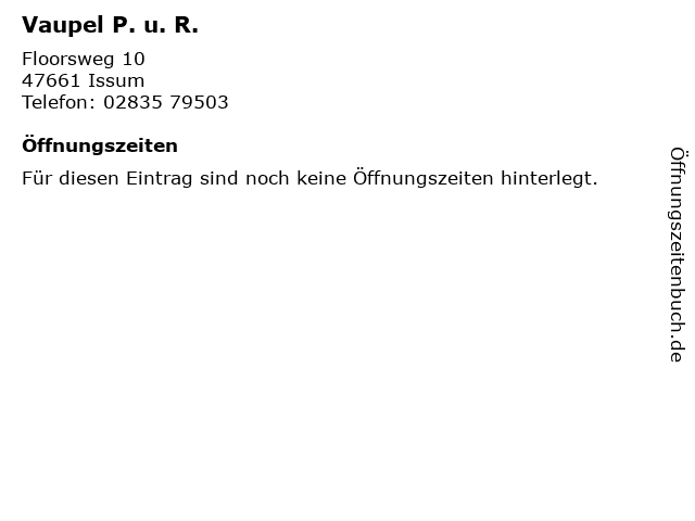 | Öffnungszeiten Vaupel P. u. R. in Issum anzeigen | |