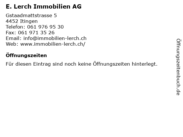 | Öffnungszeiten E. Lerch Immobilien AG in Itingen anzeigen | |