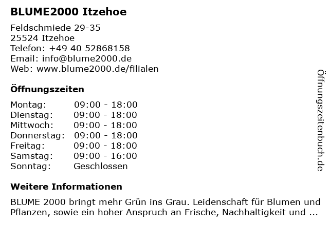 | Öffnungszeiten BLUME2000 Itzehoe in Itzehoe anzeigen | |