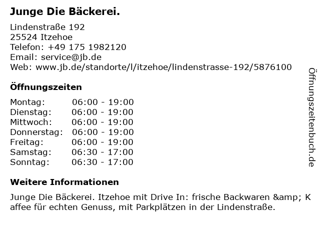 | Öffnungszeiten Junge Die Bäckerei. in Itzehoe anzeigen | |