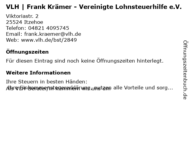 | VLH | Frank Krämer - Vereinigte Lohnsteuerhilfe e.V. anrufen | |
