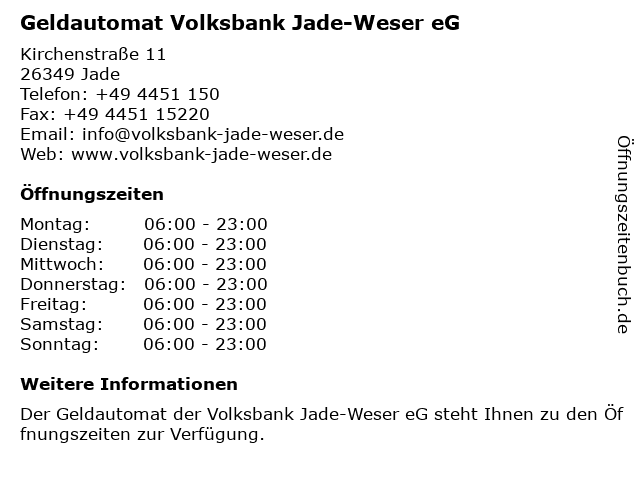 Branchen & Suchbegriffe zu Geldautomat Volksbank Jade-Weser eG:bargeld, eg, geldautomat, jade, volksbank, weser |