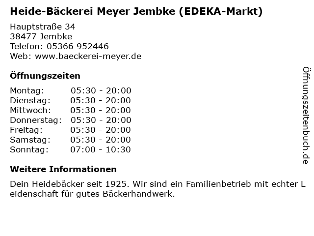 Branchen & Suchbegriffe zu Heide-Bäckerei Meyer Jembke (EDEKA-Markt):bäckerei, edeka, heide, jembke, markt, meyer |