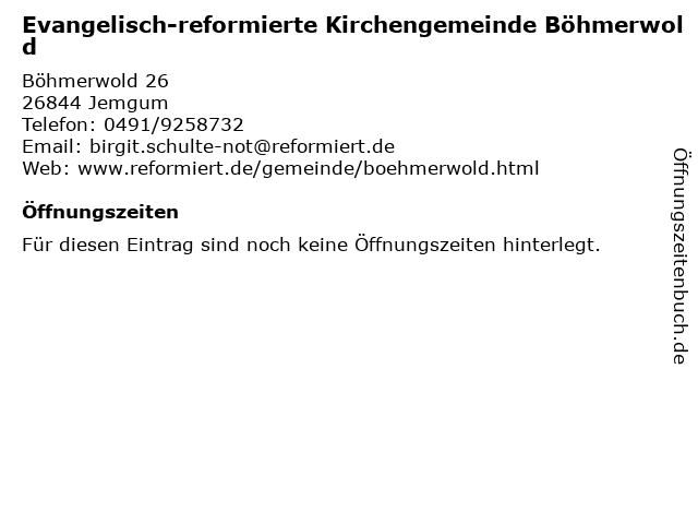 | Evangelisch-reformierte Kirchengemeinde Böhmerwold anrufen | |