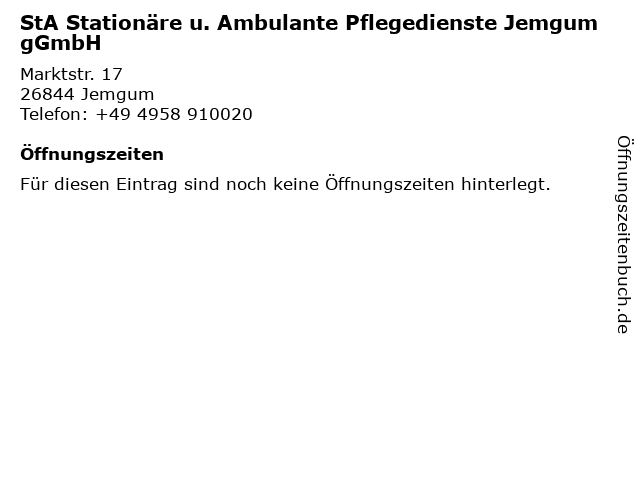 | StA Stationäre u. Ambulante Pflegedienste Jemgum gGmbH anrufen | |