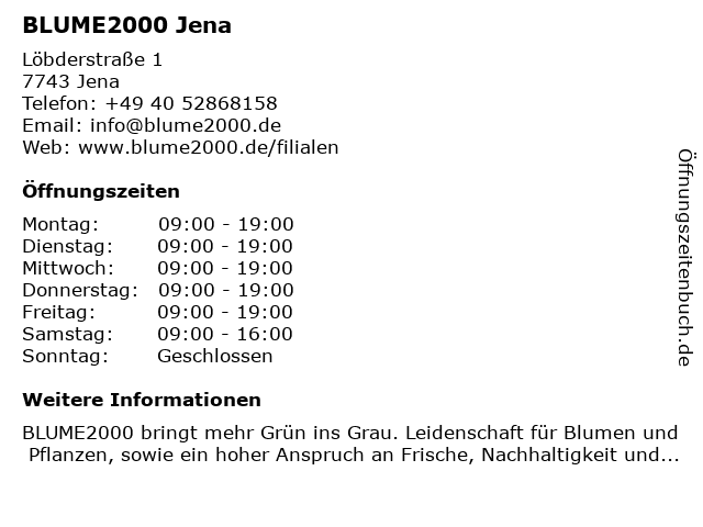 Öffnungszeiten BLUME2000 Jena in Jena anzeigen | |