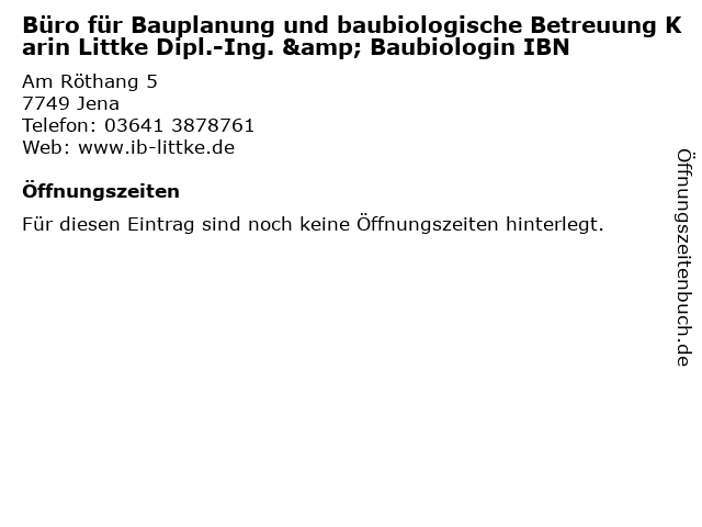 | Büro für Bauplanung und baubiologische Betreuung Karin Littke Dipl.-Ing. & Baubiologin IBN anrufen | |