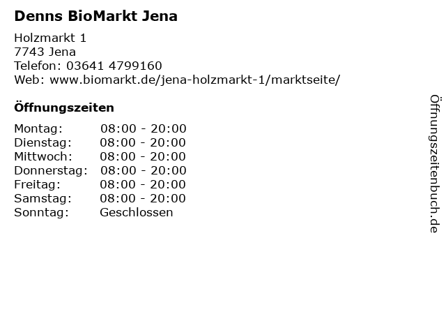 | Öffnungszeiten Denns BioMarkt Jena in Jena anzeigen | |